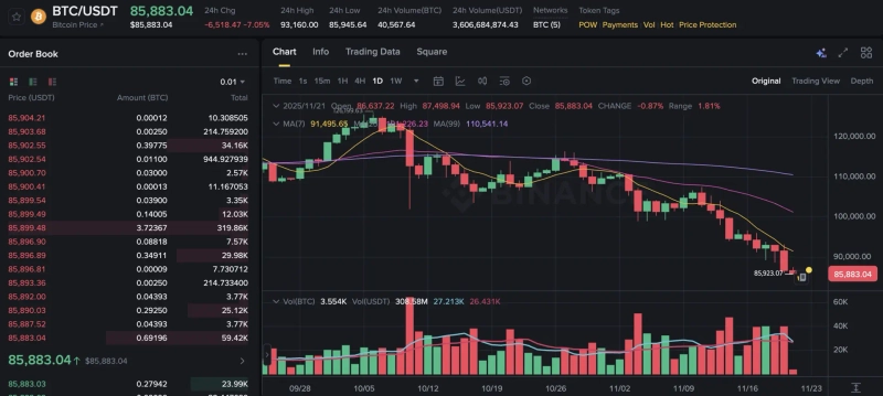 速報ビットコイン(BTC), 86,000ドルも崩壊公開済み 2025年11月20日 午後9:46Doohyun Hwang 21リンクをコピーテレグラムX写真=バイナンスBTCDoohyun Hwangcow5361@bloomingbit.ioKEEP CALM AND HODL🍀