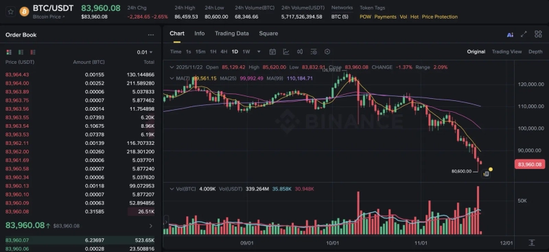 速報ビットコイン, 84,000ドルを下回る公開済み 2025年11月22日 午前12:34ソースDoohyun Hwang 00リンクをコピーテレグラムX写真=バイナンスBTCDoohyun Hwangcow5361@bloomingbit.ioKEEP CALM AND HODL🍀