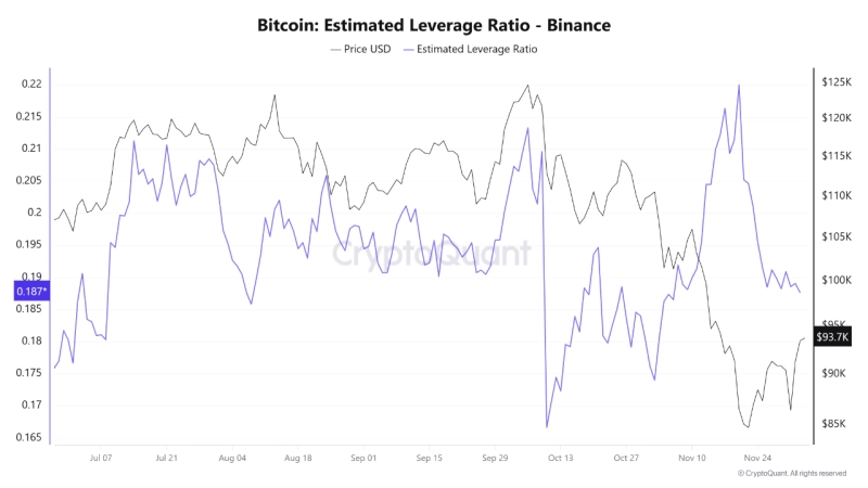 CryptoQuantの寄稿者であるArab Chainは4日(現地時間)、CryptoQuantを通じて「ビットコイン価格が9万3000ドルに上昇する中で、バイナンスのELRは下落傾向を続けている」と述べ、「ビットコインの現物・先物の取引量を基準とした世界最大のプラットフォームであるバイナンスの最新ELRは市場の構造的変化を示す数値だ」と明らかにした。ELRは先物市場の未決済建玉(OI)規模が取引所の仮想資産保有量に対してどれほど大きいかを示す指標だ。一般にELRが高まるほど市場内のレバレッジが過熱していると見なされる。