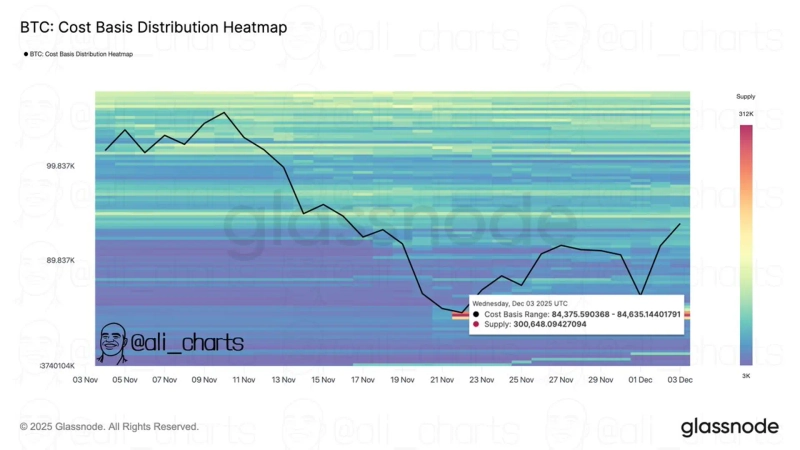 5日(韓国時間) アリ・マルティネス 仮想資産(暗号通貨)分析家は X(旧Twitter)を通じて "300,648のビットコインが84,400ドルに蓄積されている" とし "この区間が強力なサポートラインとして機能する可能性がある" と分析した。