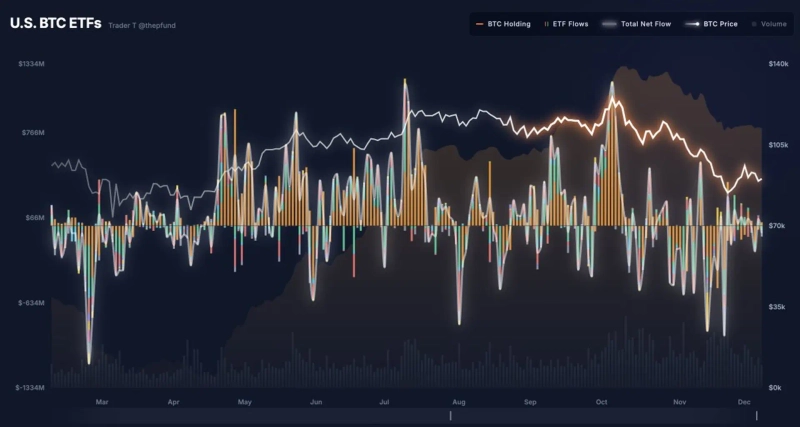 8日(現地時間)、トレーダーTはX(旧Twitter)を通じて当日ビットコイン現物ETF11銘柄で合計6050万ドルが純流出したと伝えた。