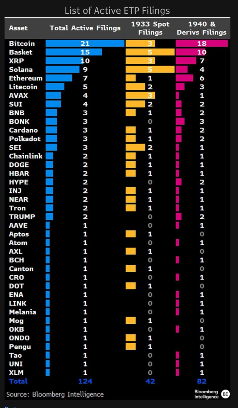 米当局の上場承認を待っている暗号資産上場投資信託(ETF)は124件にのぼることが分かった。