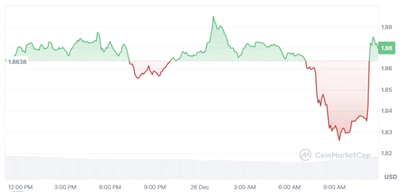 短期的には1.87ドル水準が重要変数と見なされています。コインデスクはこの水準が単なる支持線ではなく方向性を決めるレベルに変わったと評価しました。該当価格帯を回復して維持できれば1.90~1.91ドル台までの反発が期待でき、逆に安定して確保できなければ1.86ドル台、さらに下では1.855ドル付近まで開くとの分析です。