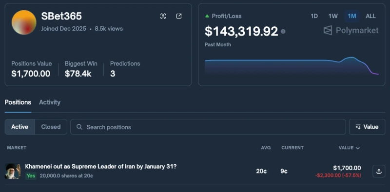 これに先立ち、分散型予測市場Polymarketでは、ベネズエラの軍事作戦が開始される直前、あるアカウントが「ニコラス・マドゥロ大統領が1月中に退任する」に賭け、約1200%の利益を上げたとしてインサイダー取引疑惑が持ち上がった。さらに当該アカウントは、「アヤトラ・アリ・ハメネイ・イラン大統領の退任」にも賭けていたことが明らかになった。