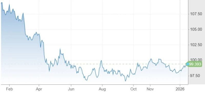 しかしドル指数は昨年11月以降、再び99前後まで戻っています。 米国経済への楽観論や年初の地政学的緊張がドル高を促しているためです。本来は安全資産としての役割も担うはずの円が、最近は各種地政学リスクにもかかわらず18カ月ぶりの安値まで下落しているため、ドルの相対的な強さが抑えられていません。円はICEドル指数を構成する通貨バスケットで構成比2位です。
