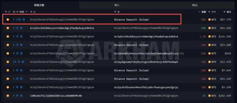 18日(韓国時間)、オンチェーンアナリストのEmberCNによると、このクジラは9時間前にビットコイン500枚を売り払った。