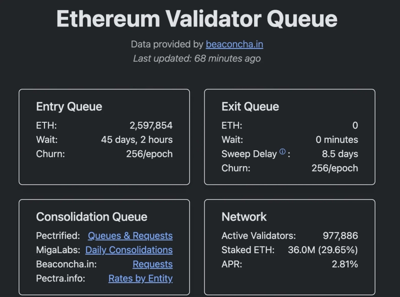 - 新規ステーキング参入の待ち数量が直近1カ月で5倍以上増え、260万件まで急増したと伝えた。