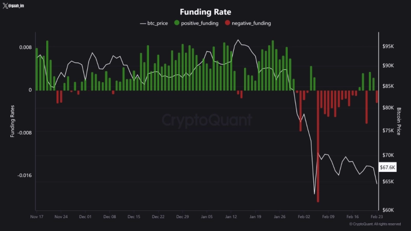 - 同氏は、先物市場のファンディングレートが全般的にマイナスの領域にとどまり、構造的に売り圧力が市場を支配していると指摘した。