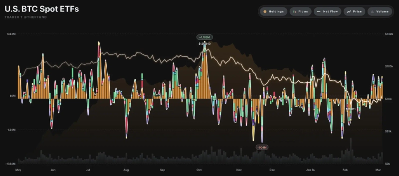 続いて、フィデリティのワイズ・オリジン・ビットコイン・ファンド(FBTC)が4,801万ドル、グレースケール・ビットコイン・ミニ・トラスト(BTC)が3,235万ドルの純流入を記録した。