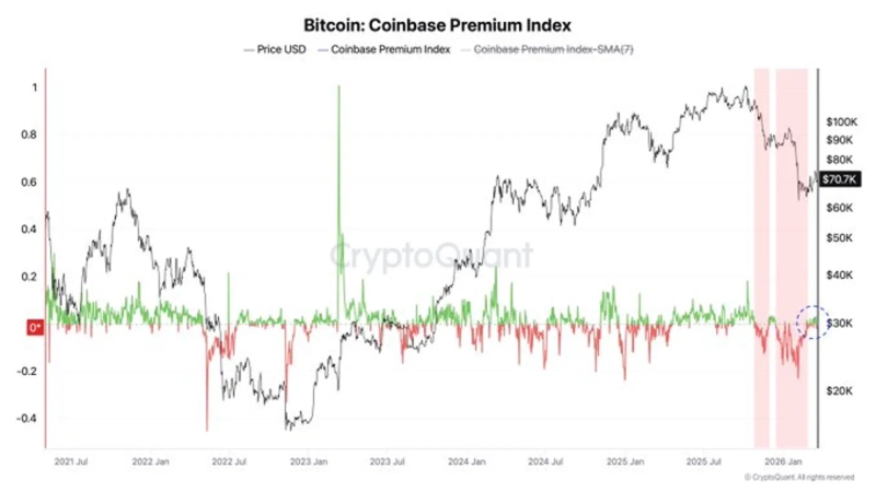 ここ数週間、コインベース・プレミアムはマイナス圏にとどまっていた。