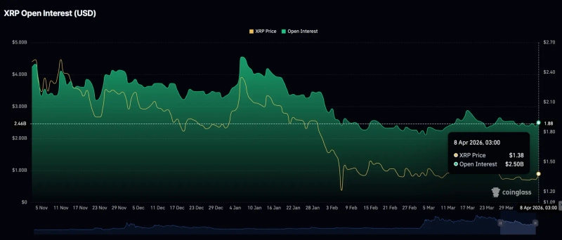 投資心理全般の改善も相場の反発を後押しした。コイングラス(CoinGlass)によると、XRP先物の未決済建玉(OI)は前日の23億8000万ドルから25億ドル水準に増えた。個人投資家のレバレッジ投資が広がり、リスク選好が持ち直していることをうかがわせる。