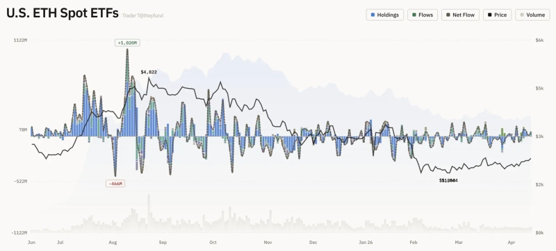 - 米国のイーサリアム(ETH)現物ETF市場では、資金の純流入が続いている。