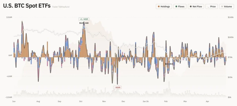 米国のビットコイン(BTC)現物上場投資信託(ETF)から4月28日、約9000万ドルの資金が流出した。