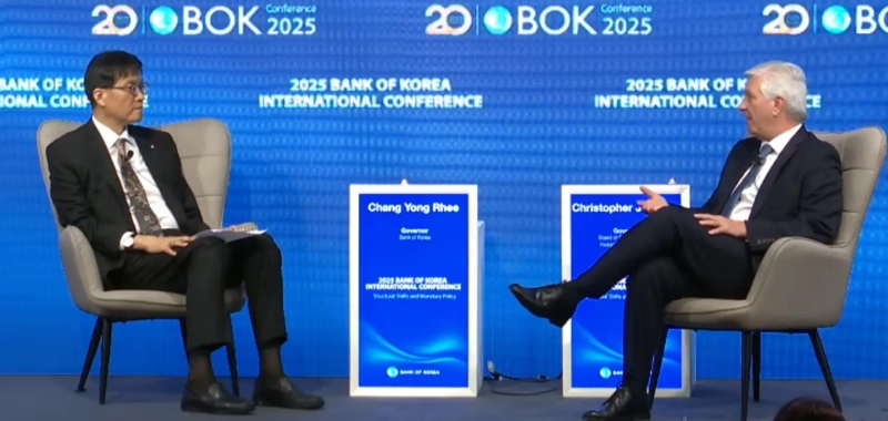 2日、業界によると、李昌鏞韓国銀行総裁はソウル中区韓国銀行別館で開催された「2025 BOK国際カンファレンス」で、クリストファー・ウォラー米連邦準備制度(Fed・ヨンジュン)理事との対談において、資本規制回避の可能性などを考慮し「ウォン建てステーブルコインをノンバンクにも許容するかは考えてみる必要がある」と述べました。