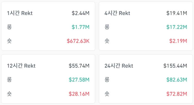 過去24時間で仮想資産(暗号通貨)の無期限先物市場においてポジション清算規模が1億5544万ドルに達したことが明らかになりました。