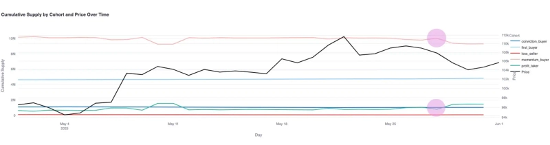 2日(現地時間)、GlassnodeはX(旧Twitter)を通じて「投資家行動データによると、28日前後から投資家の買い増しは鈍化しました。一方で利益確定の動きは活発化しています」と明かしました。さらに「これは短期的な高値でよく見られるパターン」であり、「投資家は追加購入よりも売却に集中している」と補足しました。