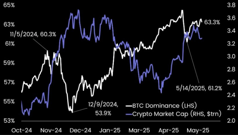 - レポートではアルトコインの市場占有率が上がっている兆候はなく、投資需要がビットコイン現物取引へ集中していると明かしています。
