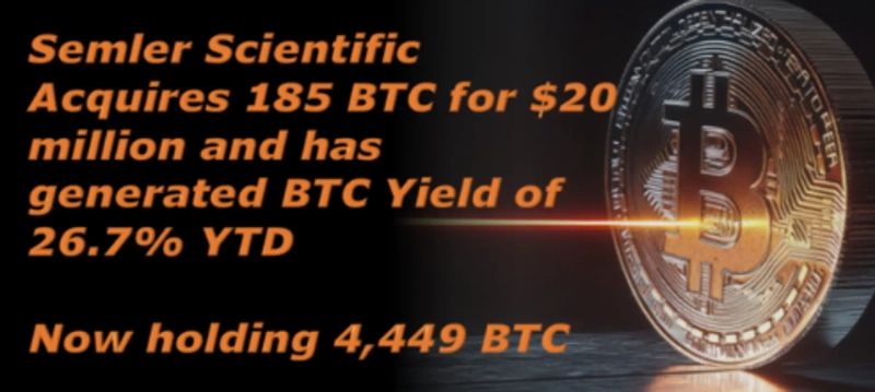 - セムラー・サイエンティフィックは今年26.7%の収益率を記録しており、現在合計4,449BTCを保有中だと強調しました。