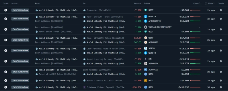 - WLFIはこれに伴い、Ethereum (ETH)、Wrapped Bitcoin (WBTC)、Lido Staked Ether (STETH) など合計5,200万ドル相当の仮想資産を担保として預けたと述べた。