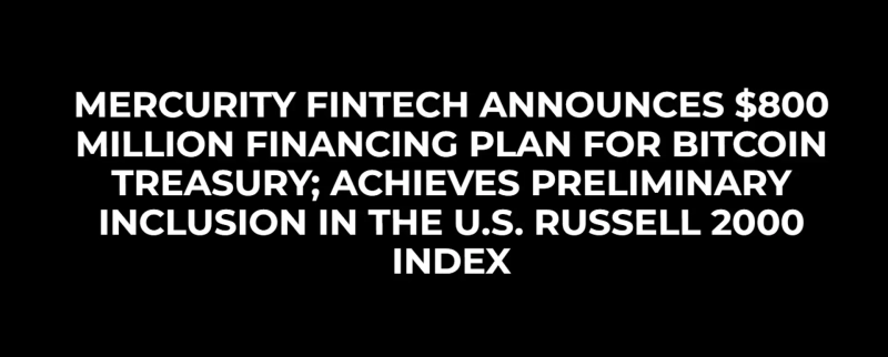 - Mercurity Fintechがビットコイン戦略的備蓄のために8億ドルの資金調達計画を発表したと明らかにしました。