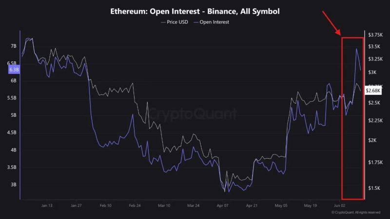 グローバル仮想資産(暗号通貨)取引所バイナンス内におけるイーサリアム(ETH)の未決済建玉(OI)規模が、5日間で38%上昇したことが明らかになった。