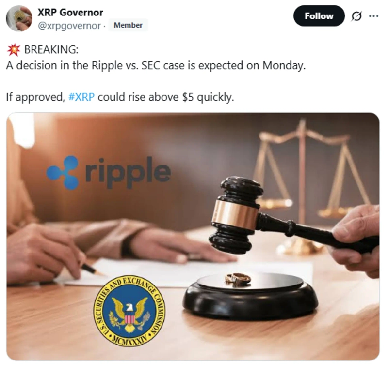 - 両者が提出した和解案に対する判決が早ければ16日に出るとの噂を受け、XRP価格の上昇期待が高まっていると述べた。