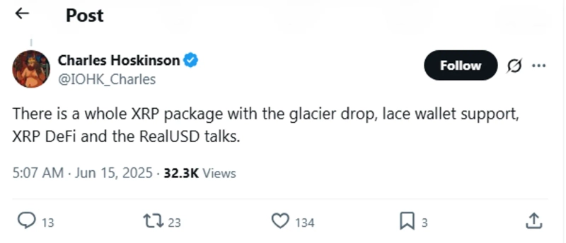 15日(現地時間)、チャールズ・ホスキンソン エイダ創設者はエックス(旧Twitter)で「RLUSDをエイダに組み込むつもりはあるか」というエックスユーザーの質問に対し、「グレイシャー・ドロップ、レース・ウォレットのサポート、エックスアールピーの分散型金融、RLUSDなど、すべてのエックスアールピーパッケージがある」と回答した。