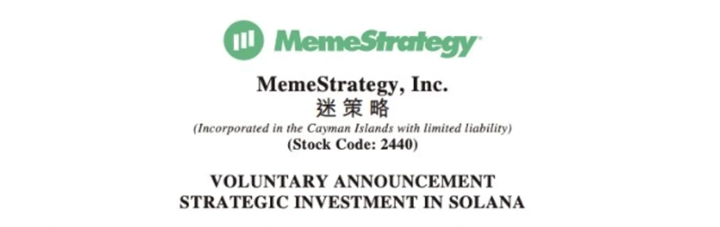 香港証券取引所に上場している暗号資産(仮想通貨)企業MemeStrategy(ミームストラテジー)がSolana(ソラナ/SOL)を買い増ししたと発表しました。香港上場企業がソラナに投資したのはこれが初めてです。