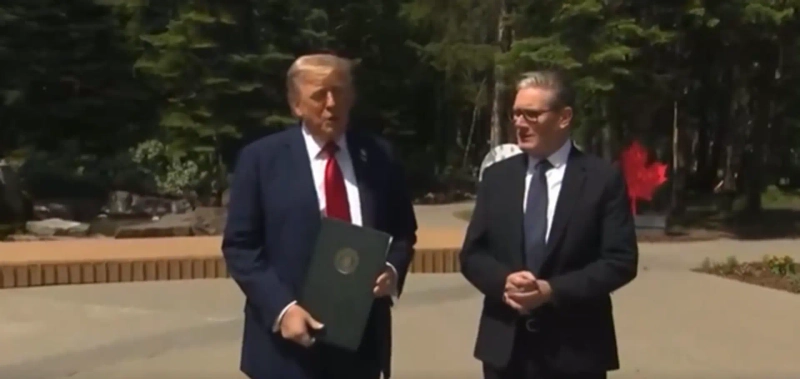16日(現地時間)、APニュースによると、ドナルド・トランプ米国大統領はキア・スターマー英首相と共に「イギリスと両国の製品に対する関税を引き下げる貿易協定を最終的に締結する文書に署名した」と発表しました。