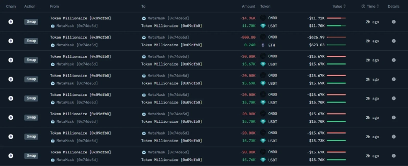 17日(韓国時間)、Onchain Lensによると、この2か月半の間Ondo Finance(ONDO)トークンを保有していたあるクジラが、ONDOトークン269万枚を1枚あたり0.788ドルで売却した。