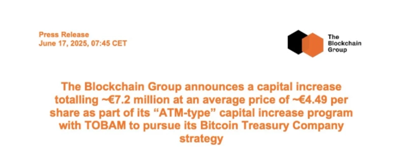 17日(現地時間)、ザ・ブロックチェーングループはプレスリリースを通じて「ビットコイン備蓄戦略の推進のため、1株あたり4.49ユーロの価格で総額720万ドル規模の有償増資を実施する」と明かしました。同グループは「今回の資金調達を通じて、1株あたりのビットコイン保有量を徐々に増やしていく」と付け加えました。