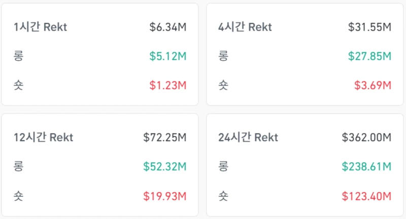 過去24時間で仮想資産(暗号通貨)無期限先物市場のポジション清算規模が3億6200万ドルとなったことが明らかになった。