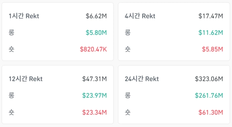 過去24時間で仮想資産(暗号資産)の無期限先物市場におけるポジション清算規模が3億2306万ドルに達したことが明らかになった。
