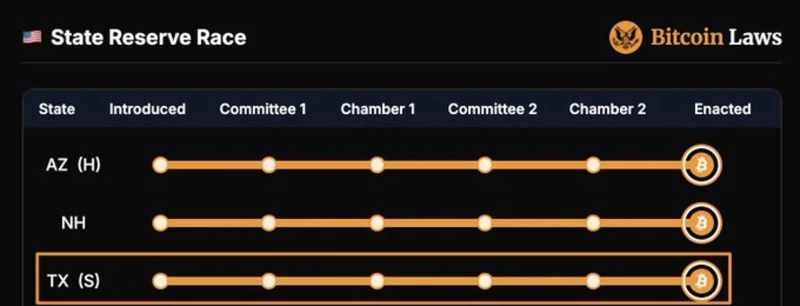 これにより、テキサス州はアリゾナ、ニューハンプシャーに続き、ビットコインを準備資産として導入した3番目の州政府となりました。