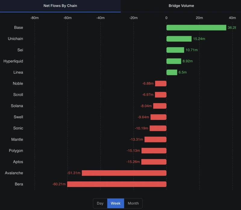 - ベース(BASE)が3628万ドルの純流入で1位を記録したと発表された。