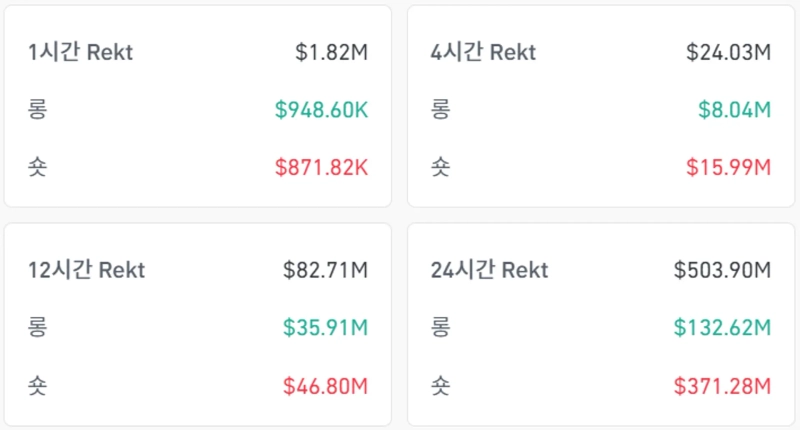 24日(現地時間)、CoinGlassのデータによると、過去24時間で暗号資産市場において合計5億390万ドル規模の先物ポジションが清算された。イスラエルとイランの停戦合意を受けて、ビットコイン(BTC)が10万5,000ドルを回復し、市場ではショート(売り)ポジションの清算が主に見られた。ただし、その後イスラエルがイラン側の停戦違反に対する追加空爆を示唆し、ロング(買い)ポジションの清算も一部急増した。具体的には、ロングポジションで1億3,262万ドル、ショートポジションで3億7,128万ドルが清算された。