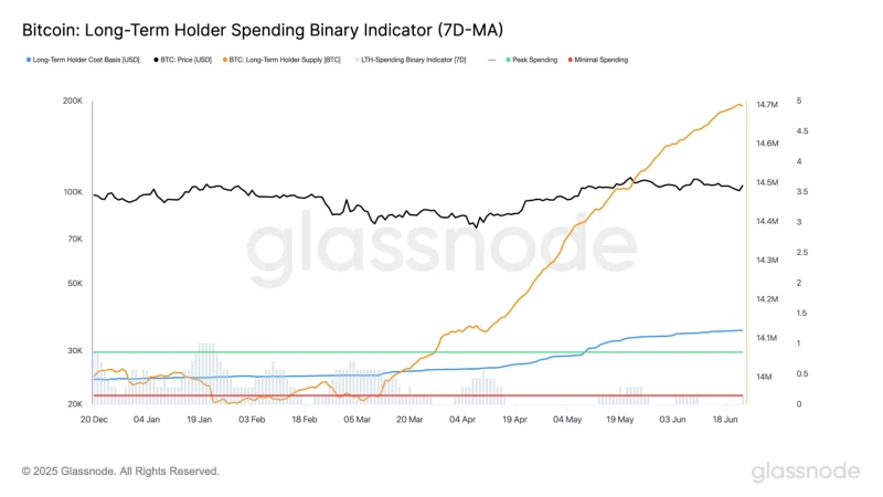 24日(現地時間)、グラスノードはX(旧ツイッター)を通じて「ビットコイン長期保有者の総保有量は1,470万BTCで、過去最高値に近づいている」とし、「最近の市場の変動性にもかかわらず、売却活動は低い水準を維持している」と明らかにした。