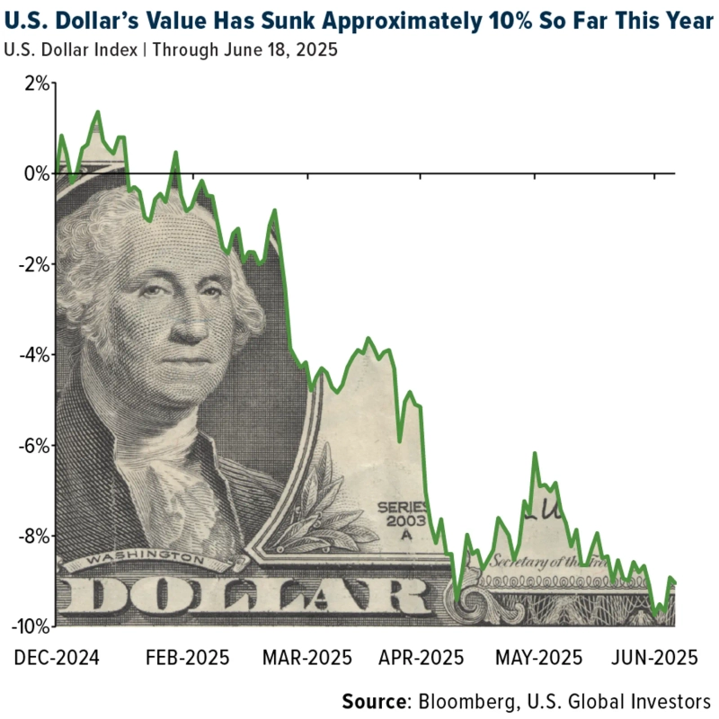 主要通貨バスケットに対する米ドル指数は、今年に入り6月中旬までに約10%下落し、現在3年ぶりの最安値で取引されています。