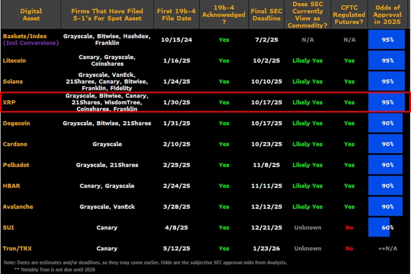 - ブルームバーグのアナリストは、XRP現物ETFの年内承認確率を95%に引き上げたと述べました。