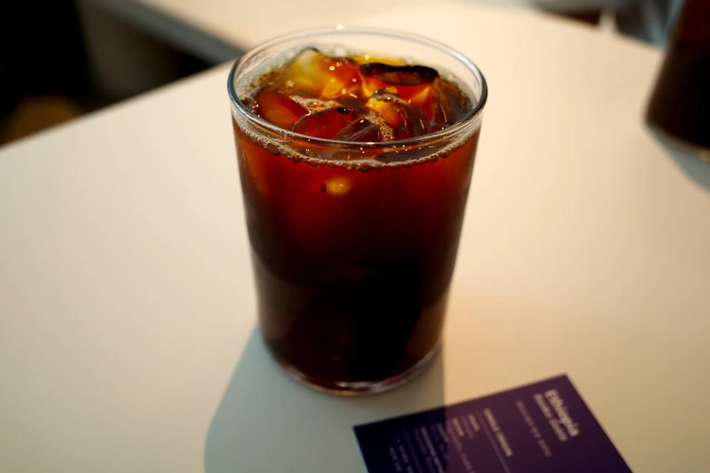 カフェの2階の席を取り、フィルターコーヒーを2杯注文した。選んだ豆は「エチオピア バンコ コティティ」と「エチオピア チェルベサ デカフェイン」。パク総括はデカフェイン豆で淹れたコーヒーを飲んだ。コーヒーに添えられた名刺サイズのカードには、エチオピア バンコ コティティ豆のフレーバーとしてグレープフルーツ、ラベンダー、ラズベリー、赤ブドウなどが書かれていた。
