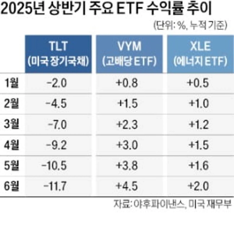 一方で、キャッシュフローが安定した防衛・エネルギー・インフラ・配当株中心のETFは、相対的に堅調です。代表的な高配当・実物資産ETFである「Vanguard High Dividend ETF(VYM)」やエネルギーセクターETF(XLE)は、年初比でそれぞれ5〜10%の堅実な収益率を記録しています。