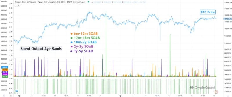 1日(韓国時間)、CryptoQuant寄稿者YonseiDentはレポートで「5月以降、ビットコインが100,000~110,000ドル台で推移する中、6ヶ月以上保有する長期保有者による売り圧力が継続的に観測されている」とし、「長期投資家の売り圧力が続いている中でも価格が維持されているのは、新たな買い手が現れていることを示唆している」と分析しました。