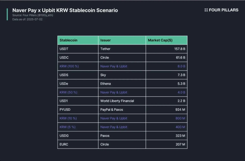 つまり、現在の韓国市場では、多様な発行体による様々なウォン建てステーブルコインの発行が期待されています。しかし、筆者はもしネイバーペイとアップビットが提携してステーブルコインを導入した場合、彼らがウォン建てステーブルコイン市場を掌握する可能性が非常に高いと考えます。