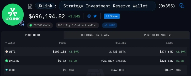UXリンク(UXLINK)が70万ドル規模のビットコイン(BTC)およびUXリンクトークンを保有していることが明らかになった。