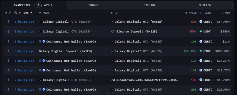 - Galaxy DigitalがCoinbaseから4,379万ドル規模のCBBTCを出金したことが明らかになった。