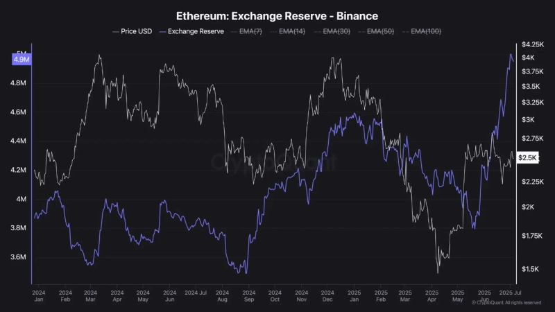 6日(韓国時間)、Boris Best(CryptoQuant寄稿者)はレポートで「バイナンスは現在イーサリアム全体流通量の4%以上を保有している」とし、「これは2023年5月以降、最高水準だ」と伝えました。