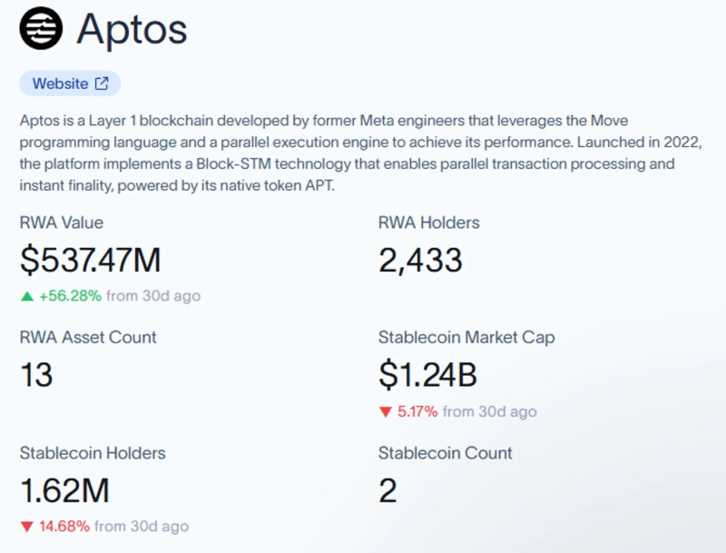 - Aptosネットワーク内の実物連動資産(RWA)TVLが前月比56.28%急増したとWuBlockchainが伝えました。