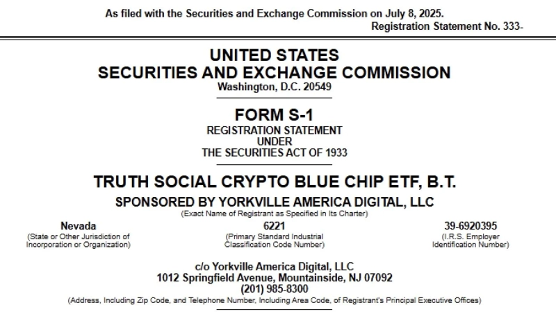 ドナルド・トランプ米国大統領のソーシャルメディア企業トゥルースソーシャル(Truth Social)が仮想資産(暗号資産)ブルーチップ上場投資信託(ETF)申請書(S-1)書類を提出したことが明らかになりました。