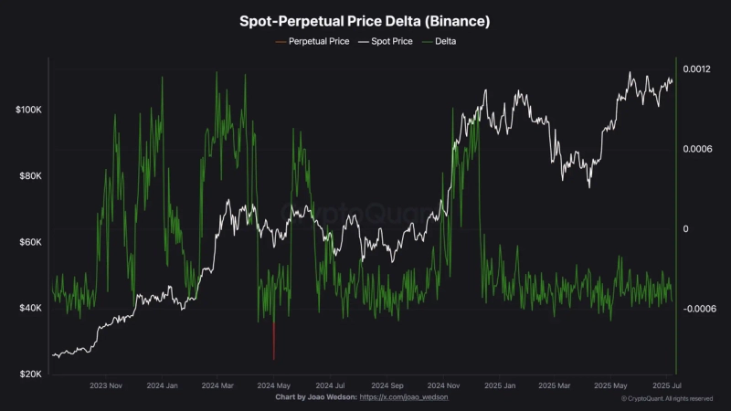 9日(現地時間)、BorisVestクリプトクアント寄稿者はレポートで「昨年12月以降、バイナンスのビットコイン現物と先物の価格差が継続してマイナスを維持している」とし、「これは現物価格が先物価格より高いことを意味し、先物トレーダーの市場参加が低調であるサインだ」と述べた。続けて「一般的には市場が『買い増し』局面に入った際にこのような傾向が現れる」と付け加えた。