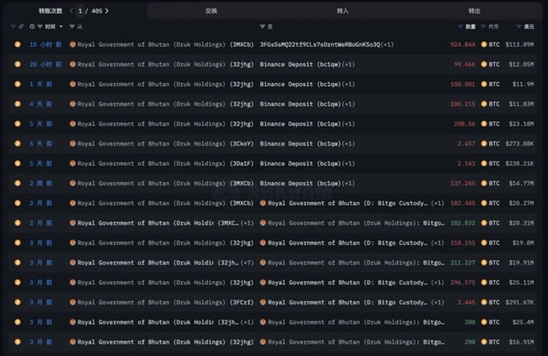 15日(韓国時間)、アンバーCNによると、ブータンは今月1日から同日までに合計749.3個のビットコインをバイナンスへ移しました。平均価格は115,254ドルでした。